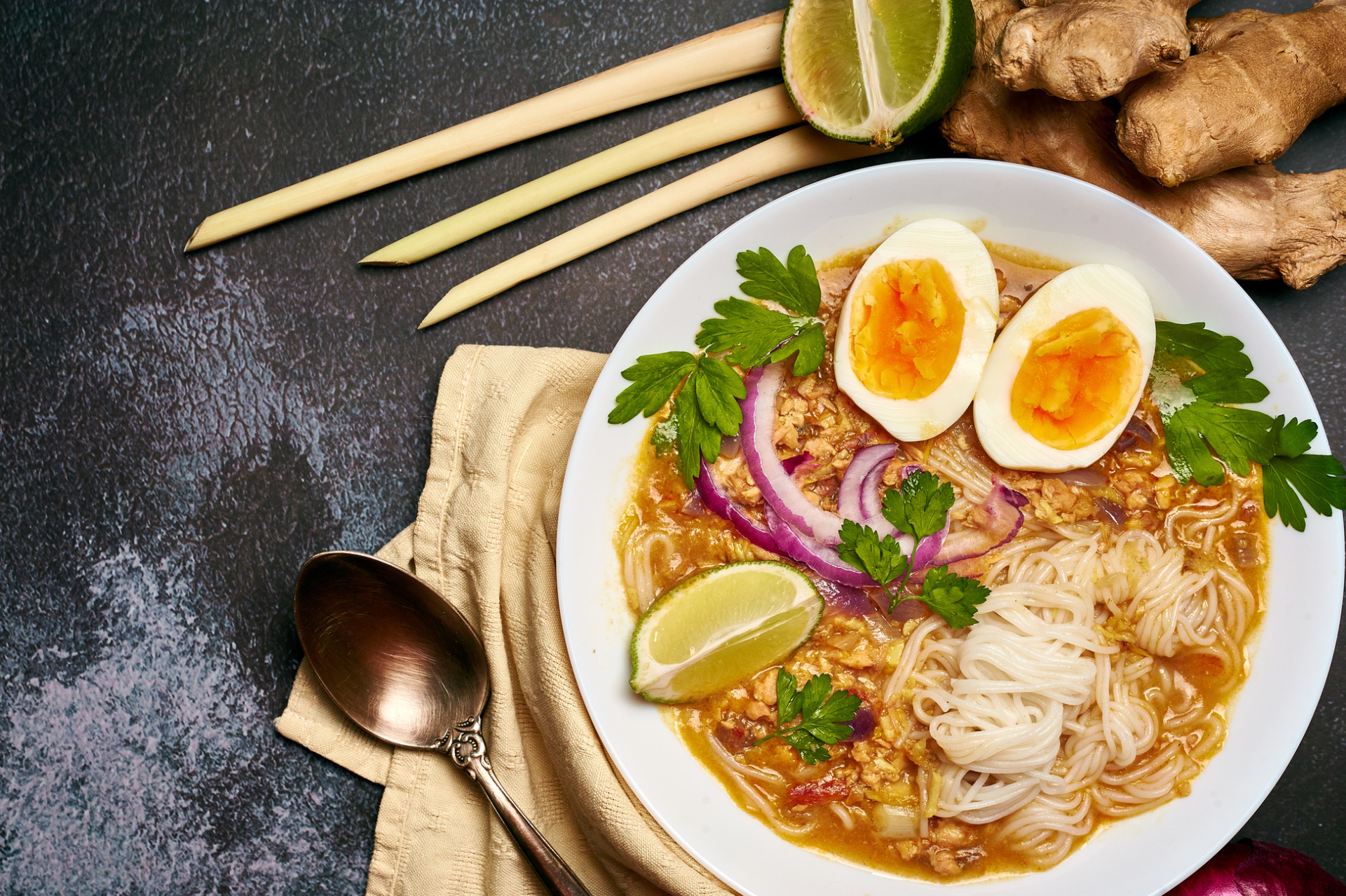 Une cuisine au carrefour de multiples influences. Pour le petit-déjeuner il est également possible de consommer des nouilles au poulet et au lait de coco – ohn-no khao swè en birman.